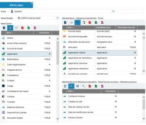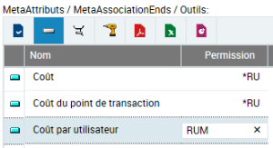 Dans le cadre MetaAttributs / MetaAssociationEnds / Outils, les valeurs des permissions des éléments de la MetaClass sont aussi modifiées.