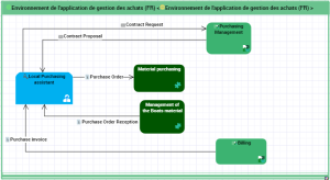An application environment presents the use context of the applications of a project. This describes the interactions between the org-units involved and the internal and external applications of the projects that ensure the project functionalities.