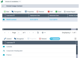 The usage context of an application or an application system enables specification of the list of functionalities offered to each population of users for a given installation over a period of time. Several contexts can be created for a given installation.