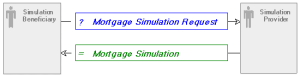 Interactions make it possible to describe the service interfaces, i.e.: all the input and output messages that they need to take into account. In our example, the Mortgage Simulation interaction comprises the two messages: Mortgage Simulation Request and Mortgage Simulation.