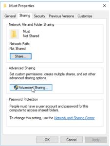 Go to the „Sharing“ tab and click „Advanced Sharing“: