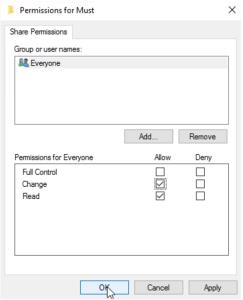 Type the UNC path and click “OK”. In our case, it is \\V-CLUST-SQL\Must: