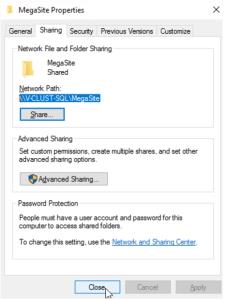 And eventually, the share that will host the clustered MegaSite file on folder “C:\MegaSite” to have the share \\V-CLUST-SQL\MegaSite :