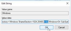 Find, in the string, the part called “SharedSection”, and update the 3rd number to 8192. The number is in KB, so that means that it will be set to 8MB:
