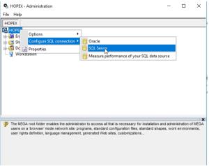 Then, open the “SQL Server” option from “HOPEX->Configure SQL Connection”: