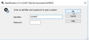 - “System” account (no password) allowing a connection to the environment in the Administration module.