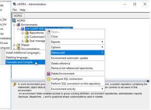 Right-click he environment, choose “Metamodel->Translate and Compile”: