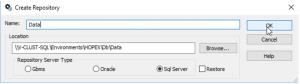 Enter the name of the repository. Here, “Data”, check that “SQL Server” is the chosen storage, and click “OK”: