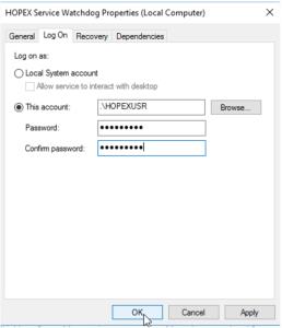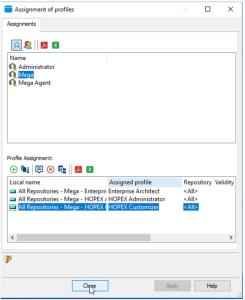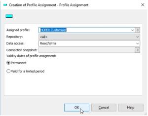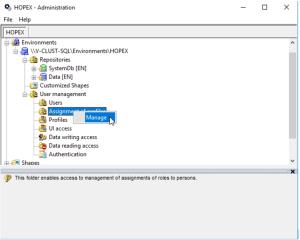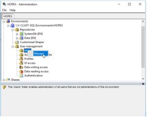 Then go to the “Security” tab, to confirm that the “HOPEXUSR” and “HOPEXAPI” users have read/write access: