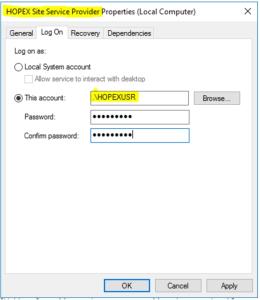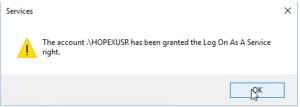 We use a SQL Server native account called “MEGAUSR”. Password is shared to the people that can use this platform to deploy the solution. It has “dbcreator” right at the instance level, as well as the securable “view server state”. Thus, it will be able to create new databases through Hopex.