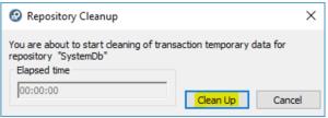 5. This opens up the following window, where you have to click « Clean Up », which will have the effect of creating a stored procedure in the SQL Server related database, and to execute it at once :