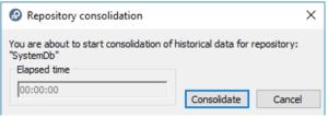7. Do the same operation with the second option in « RDBMS Administration », called this time « Shrink unused repository historical data », that will create the second stored procedure and execute it, by pressing the “Consolidate” button :