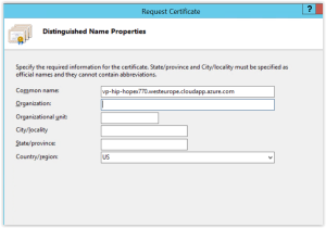 4. In the Common name field, enter the server name (Fully Qualified domain name).