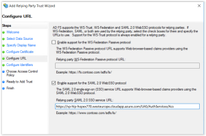 9. In the Configure URL page, select Enable support for the SAML2 Web SSO protocol.