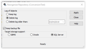 HOPEX Administration: Administrator Guide : Managing Repositories : Managing Repositories : Reorganizing an RDBMS Repository