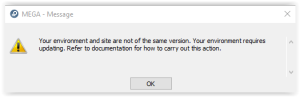 Warning 'Your environment and site are not of the same version. Your environment requires updating…'