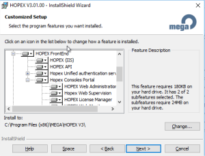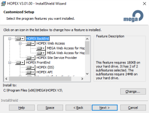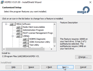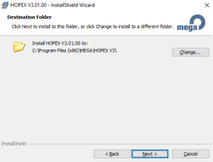 4. If needed, click Change to modify the installation folder for the Mega Software, else keep the default one.