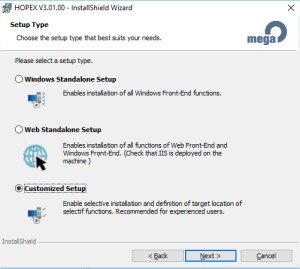 - Advanced Setup: allows more complex installation scenarios. Use it for any multi-server installation (scale out or scale up), or if you require SSL/TLS.