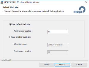 5. Choose the IIS web-site where you want to install the Hopex Web Front-End. Please note that the installer will check that there is a website running on the chosen port, and will install in the first site using that port that is available. So make sure to properly manage your websites and their ports before choosing one for the Hopex deployment. If you choose a port that is bound to no site, and that isn't listening during the installation, the setup will roll back :