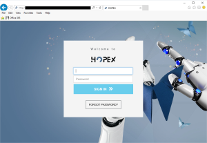 Now, use another client machine with any supported browser and browse to http://<servername>/hopex/. The login page should appear.