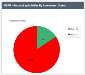 This pie chart illustrates the number of processing activities which have been assessed through a DPIA. Those which have not been assessed through a DPIA require your attention.