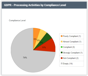 In HOPEX GDPR you may use your dashboard to identify compliance priorities and perform an initial assessment. It will enable you to focus on the activities at risk whose compliance needs to be improved.