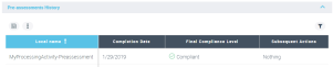 When you record the pre-assessment, it is stored in the History section with the data protection values which have been entered.