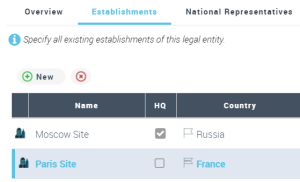 1. Open the property pages of the legal entity and select the Establishments tab.