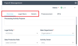 As an activity owner, you need to use the first three tabs in the processing activity property page to fully describe processing activities:
