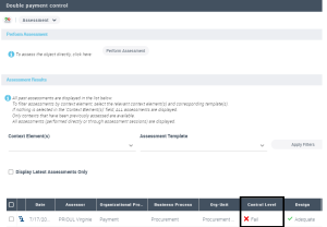 2. (optional) In the Assessment Results section, select the context element and template you are interested in and click Apply filters.