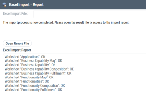 If you want to export business capability maps or functionality maps that exist in another repository than your current one, for example, you can use the Excel template of HOPEX Business Architecture.