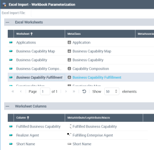 Structure of the import/export Excel template of HOPEX Business Architecture