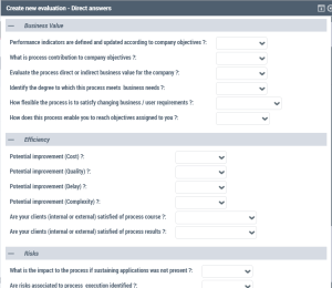 1. Open the Assessment > Specific Questions (Execution) property page of the process that interests you.