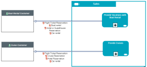 The business process diagram enables representation of product or service offerings proposed by the enterprise to each of its markets, as well as the processes that produce these.