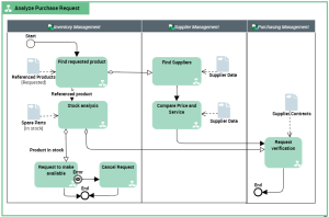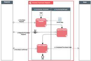 In the example of the purchase request process, the organization is represented by the following diagram.