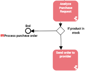 The following example presents a case where continuation of processing is conditioned: following analysis of a purchase request, the process either ends, or an order is sent to a supplier.