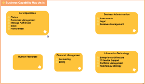 A business capability map describes what the enterprise is capable of producing for its internal needs or for meeting the needs of its clients. It is thus based on the main business capabilities of its activity at a given moment.