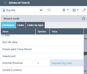 • Click in the Value field of the attribute and find, select one of the proposed values, or enter the string to search for.