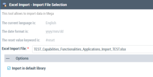 If for example your Excel file is in French and the data language in HOPEX is English, on import you receive a message of the type: value_name outside “table”.