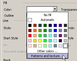 • Two-Color: fills the selected object with a color that gradually changes to another color. Click the desired colors in the Single-color and Two-color drop-down boxes.