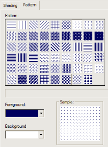The Fill frame in the Graphical options dialog box allows you to select a fill color, shading and pattern for shapes.
