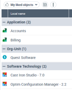 The page showing the list of objects you like or the list of objects you follow is displayed.