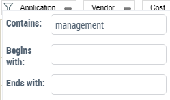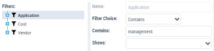- "Application", in the Filter choice field, select "Contains", then in the Contains field, enter "management".