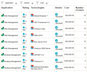 Example 3: from a Report DataSet with the "Application Technologies" definition, select "Vendor" and repeat the operation for "Cost" and "Application".