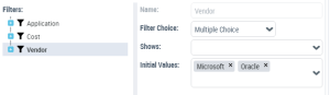 - "Vendor", in the Filter choice field, select "Multiple choice".