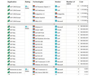 This report result presents the applications sorted by descending level of rating. At each change of level a break indicates the number of Technologies included in this rating level.