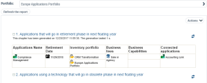 Thus, if you modify the input data (for example, the name of the portfolio analyzed), you must click Refresh the Report to take into account the new data to be analyzed before refreshing the report chapters, without which the chapters update the previously selected data.