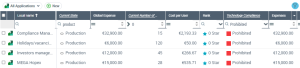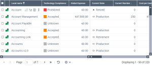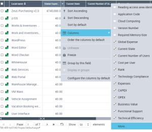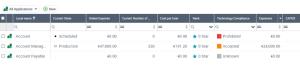 You can, for example, place the Technology Compliance and Global Expense columns directly after Local Name so they remain displayed when you view the other columns. The column scrolling cursor is positioned at the first unfrozen column level (after Global Expense).