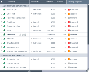 HOPEX can be used to assign the same attribute value to several objects in a list.
