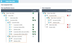 Below, only the attributes defined in the "Customer" view (Account Id and Address) are added to the "Order" view.